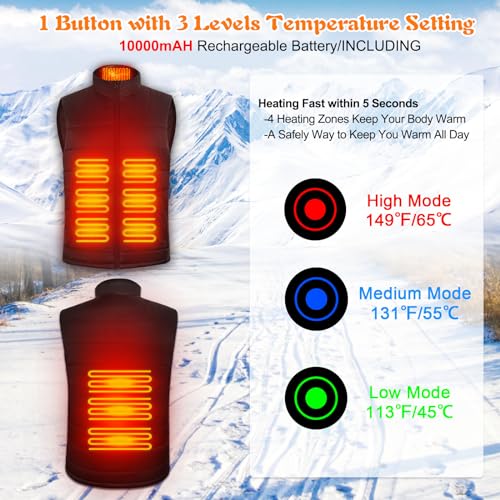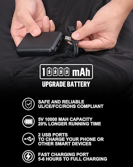 Especificaciones: Qdreclod Eléctrico Chaleco Calefactable para Hombre Mujer, Chaleco Térmico Eléctrico con Batería de 10000mAh 5V con 3 Temperaturas, Chaleco Calentador de Calentamiento Ligero