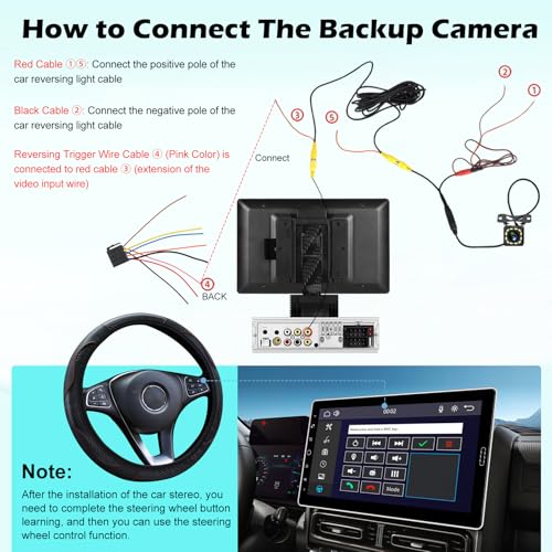 Control del volante y cámara de respaldo: esta radio Bluetooth de 10 pulgadas de un solo din es compatible con la función SWC, después de la instalación de la radio de automóvil de 10 pulgadas, necesitas completar el aprendizaje del botón del volante. Se incluye una cámara trasera HD con visión nocturna y un micrófono. radio de un solo din con una visualización automática de la imagen cuando está en reversa
