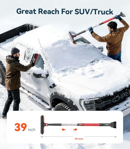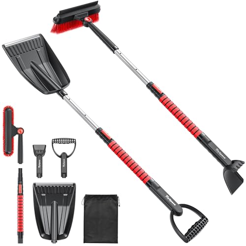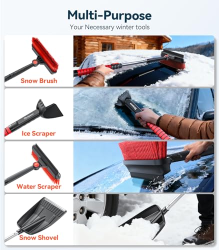Rascadores de hielo de 47.2 pulgadas para parabrisas de automóvil, 4 en 1 [construidos para durar] cepillo de nieve y raspador de hielo, escobilla de escobilla de goma, pala, mango de