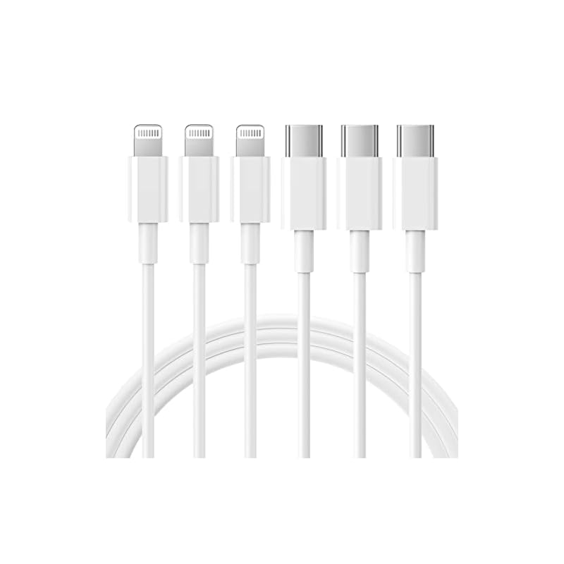 Especificaciones: RCTech Paquete de 3 cables USB C a Lightning de 6 pies [certificado MFi] para iPhone, cable de carga rápida USB-C para iPhone 14/13/12/11/XS/XR/X/8/iPad, blanco