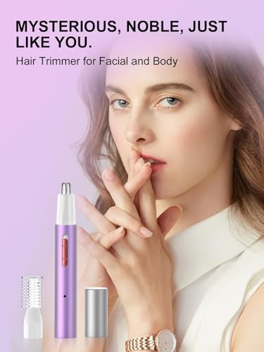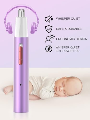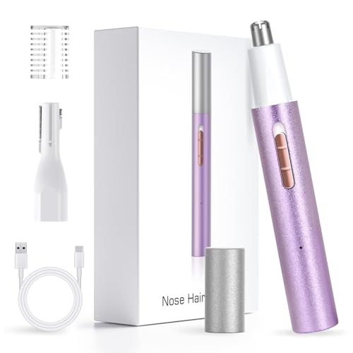 Recortador de Nariz, Orejas y Cejas Recargable e Indoloro, IPX7 Impermeable, Cuchillas Dobles, Portátil, Púrpura