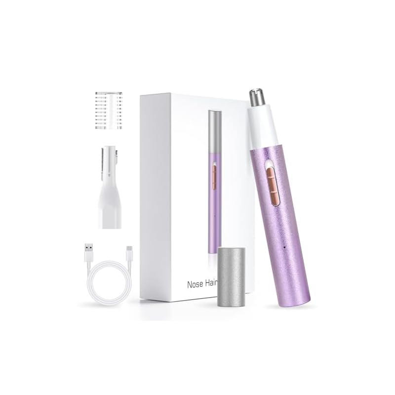 Especificaciones: Recortador de Nariz, Orejas y Cejas Recargable e Indoloro, IPX7 Impermeable, Cuchillas Dobles, Portátil, Púrpura