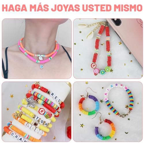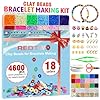 Especificaciones: Redtwo Kit de fabricación de pulseras de 5100 cuentas de arcilla, cuentas planas para hacer joyas de amistad, cuentas heishi de polímero con dijes, regalos para adolescentes, niñas, manualidades para