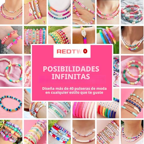 Redtwo Kit de fabricación de pulseras de 5100 cuentas de arcilla, cuentas planas para hacer joyas de amistad, cuentas heishi de polímero con dijes, regalos para adolescentes, niñas, manualidades para