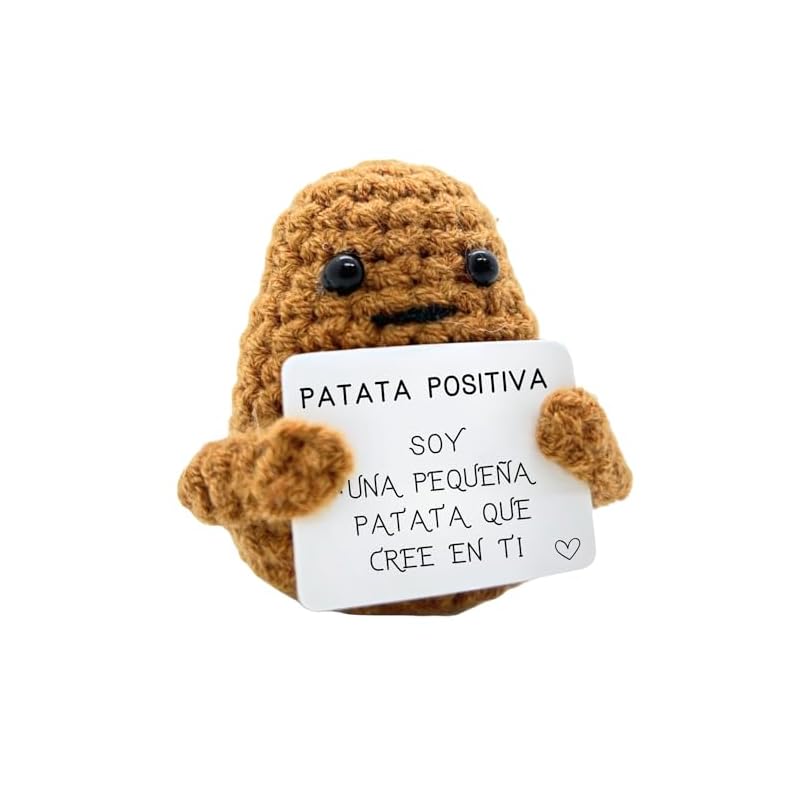 Contenido del pedido 📦: ¡Sumérgete en el mundo de la risa con nuestra Patata Positiva! Recibirás un ovillo de lana de 7 cm en forma de Patata con una palabra de ánimo impresa. La tarjeta está pegada y ¡no se despega!