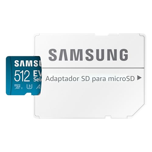 Samsung EVO Select – Tarjeta de memoria microSD + adaptador, microSDXC de 512 GB, hasta 160 Mbps, 4K UHD, UHS-I, C10, U3, V30, A2, celulares inteligentes, Nintendo Switch y tabletas (MB-ME512SA/AM)