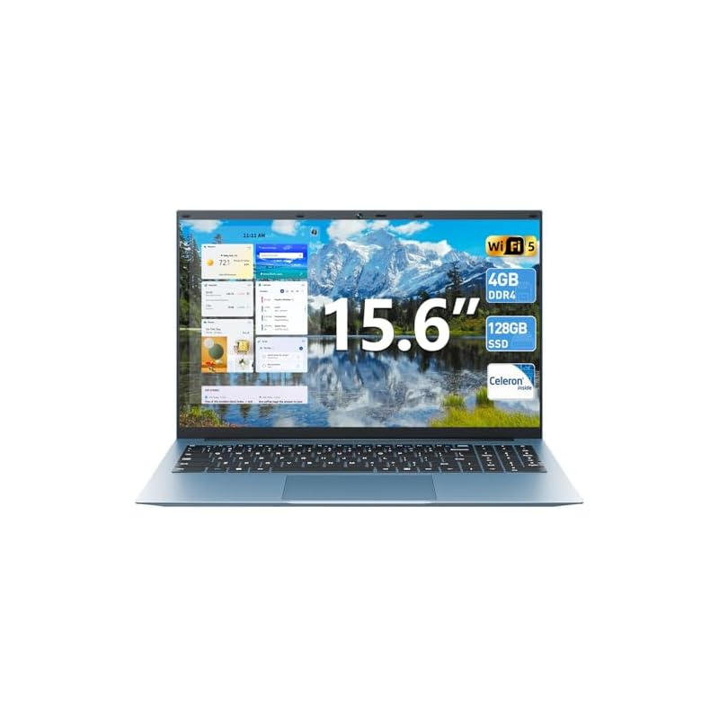 SGIN Laptop Win 11, computadora portátil de 15.6 pulgadas, procesador Celeron N4000, 4 GB RAM 128 GB SSD, BT5.0, HDMI, cámara web, batería de 7000 mAh, tipo C, visualización de 180°, WiFi 2.4/5G, USB