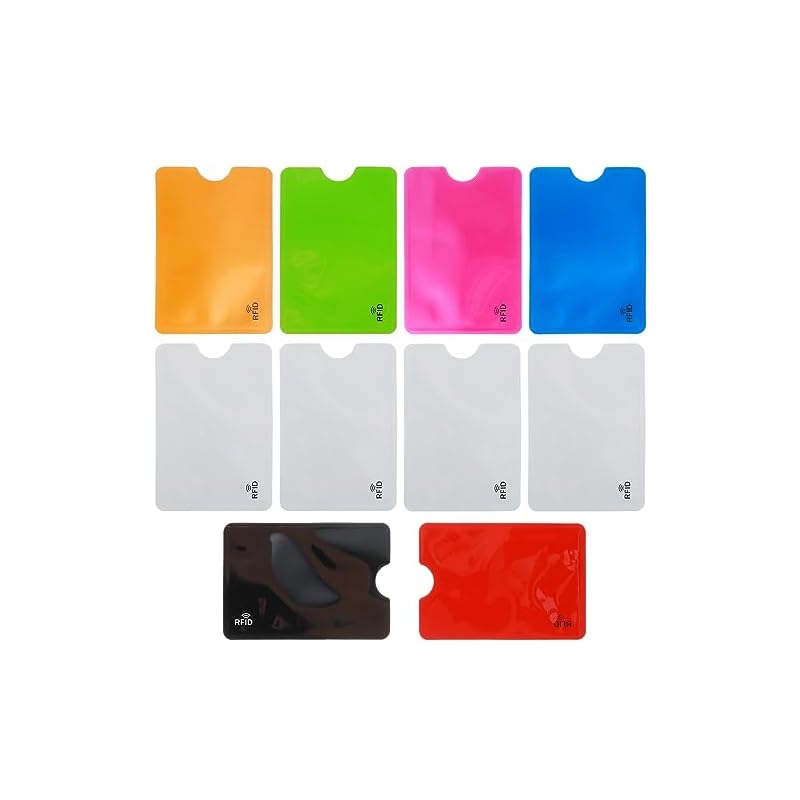 Contenido del paquete: recibirás 10 fundas protectoras RFID para tarjetas de crédito, protegen tu licencia de conducir, metro o tarjeta verde, llaves de hotel y todos los documentos de viaje familiares. y protege las tarjetas de crédito y débito de mujeres y hombres, aportando seguridad a tu vida y viajes.