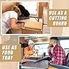 Adecuado para la mayoría de las ocasiones: esta tabla de cortar es adecuada para la mayoría de estufas, microondas y hornos; esta gran tabla de cortar de bambú tiene mucho espacio para cortar y dividir alimentos, por lo que es perfecta para casas rodantes, campistas, apartamentos, dormitorios, cocinas pequeñas y mucho más