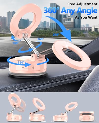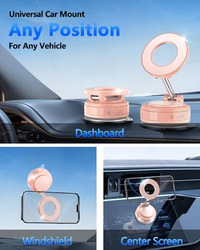 Soporte magnético de teléfono de coche al vacío para Mag-Safe [89 + libras de succión y 3200 gf magnético] 360° ajustable ultra ventosa soporte de teléfono para tu coche, soporte de coche para iPhone