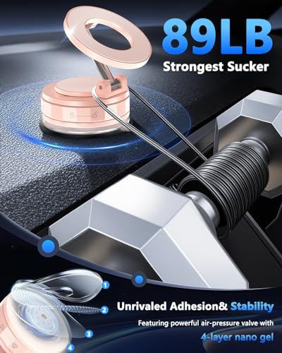 Succión más fuerte y sujeción estable: este soporte magnético plegable para automóvil cuenta con succión de vacío de bloqueo giratorio reforzado con un agarre 50% más fuerte que los soportes de automóvil estándar. La ventosa de nano gel de 4 capas soporta hasta 89 libras y soporta temperaturas extremas (-40 °F a 300 °F), agitando solo hace que se pegue más firme. Después de 9999+pruebas de durabilidad y más de 1000 accesorios, se puede limpiar y retiene el 99% de succión después de su reutilización