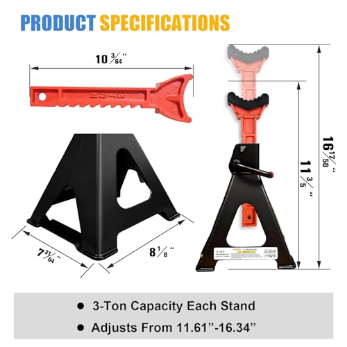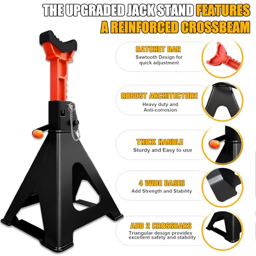 Especificaciones: Soportes de gato mejorados de 3 toneladas (6,600 libras) con 2 barras transversales y doble bloqueo, soporte de gato resistente para camiones, SUV, automóvil, herramienta de elevación de garaje