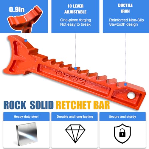 Precisión y durabilidad: diseñado para profesionales y aficionados por igual. La barra de trinquete de hierro de alta calidad de una sola pieza se bloquea firmemente en su lugar con sus dientes dentados. Este soporte para gato para automóvil está diseñado para durar, asegurando un rendimiento confiable para cada tarea de reparación y mantenimiento