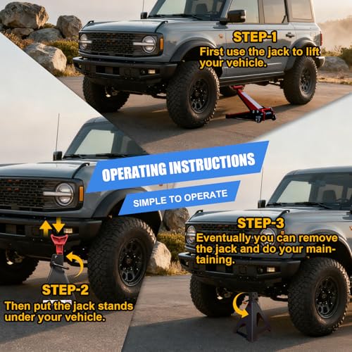 Rendimiento potente: estos soportes para gatos resistentes cuentan con una capacidad de 3 toneladas (6,600 libras) y 10 ajustes de altura (11.61 a 16.34 pulgadas). La estructura de acero rígido y la base ancha ofrecen un apoyo inquebrantable para tu camión, SUV o automóvil, lo que los convierte en un soporte versátil para cualquier proyecto