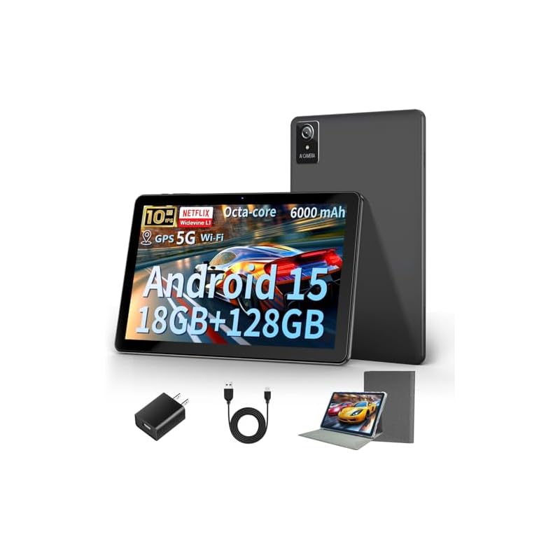 Especificaciones: Tablet de 10 pulgadas, tabletas Android 15 2025, 18GB+128GB, 1TB Expand, Widevine L1 compatible con Octa-Core Tablet con WiFi 6, batería de 6000mAh, cámara dual (5MP+8MP)