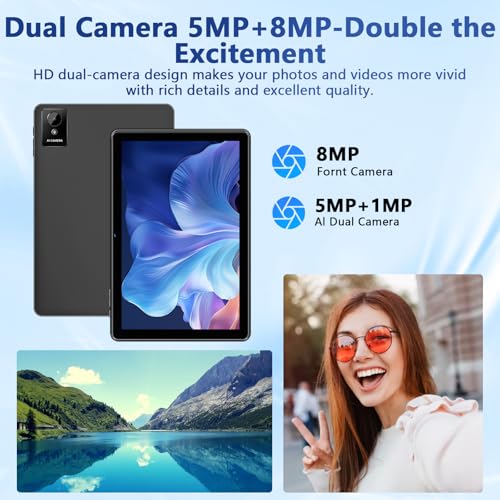 [Wi-Fi 6 + Bluetooth 5.4] Con tecnología Wi-Fi de sexta generación, esta tableta Android admite Wi-Fi de doble banda 5G y 2.4G, buscando redes rápida y libremente para proporcionar una mejor conexión a Internet con baja latencia, señal fuerte y velocidad rápida. También viene con una cámara frontal transparente de 5MP y una cámara trasera de 8MP para tus necesidades diarias, lo que te proporciona excelentes fotos y chats de video claros.