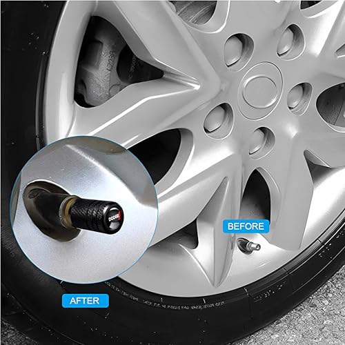 Especificaciones: Tapas de vástago de válvula de neumático para Dodge Series tapas de aire de rueda de coche de metal tapas de vástago de válvula de auto, accesorios 4 piezas