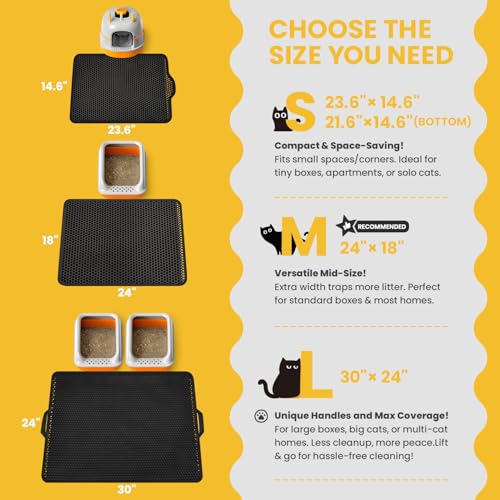 Especificaciones: Tapete de arena para gatos de tamaño compacto de 23.6 x 14.6 pulgadas para espacios pequeños, capa trasera impermeable a prueba de fugas, alfombrilla de captura de panal de abeja, lavable, fácil de
