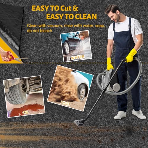 Fácil de cortar y personalizar: nuestra alfombrilla de garaje se puede recortar fácilmente con tijeras para adaptarse a cualquier tamaño o forma. Los bordes no se deshilachan ni se agrietan, por lo que es fácil de personalizar para tu garaje. También puedes reutilizarlo como un forro de jaula para mascotas o tapete de arena para gatos. Las arrugas son normales, simplemente colócala plana y desaparecerán naturalmente con el tiempo.