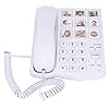 【Teléfono de escritorio con cable para la oficina en casa】 Número guardado: este teléfono de botón grande puede almacenar previamente el número de casa, el número de SOS y el número de pedido de comida. Es fácil para las personas mayores hacer llamadas.