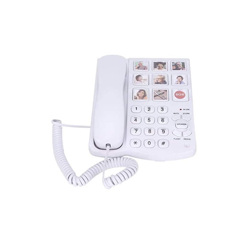 Especificaciones: Teléfono Fijo sobremesa con Teclas Grandes, Volumen Alto, Manos Libres, Botón SOS y Silenciar Almacenar Altavoz Flash Rellamada, Teléfono de sobremesa con memoria fotográfica para personas mayores