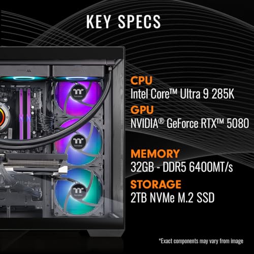 Especificaciones: Thermaltake Escritorio para juegos LCGS View u2880-380 (Intel® Core™ Ultra 9 285K, ToughRam 32GB DDR5 6400MT/s memoria RGB, NVIDIA® GeForce RTX™ 5080, 2TB NVMe M.2, WiFi, Windows 11) V38B-Z890-580-LCS