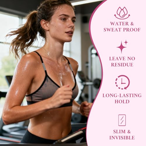 Fuerte sujeción durante todo el día y a prueba de sudor: el adhesivo mejorado ofrece una sujeción fiable durante más de 12 horas, incluso a través del sudor, la humedad o el movimiento. Asegura escotes, tirantes de brasier, dobladillos y faldas para evitar resbalones, perfecto para bodas, trabajo, citas o yoga caliente.