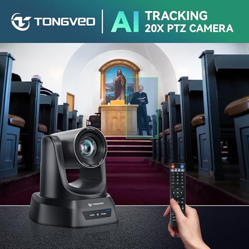 TONGVEO 4K PTZ Camera with 20X Optical Zoom, AI Auto-Tracking HDMI/USB3.0/LAN/PoE Video Conference Room Camera for Church Worship & Education, Live Streaming Easy with YouTube OBS vMix Zoom