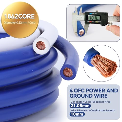 Cable de alimentación OFC de calibre 4 de 17 pies, 1862 hebras ultra flexible (azul) Cable de alimentación OFC de calibre 4 de 3 pies, cable de alimentación OFC de 1862 hebras Ultra Flex (blanco)