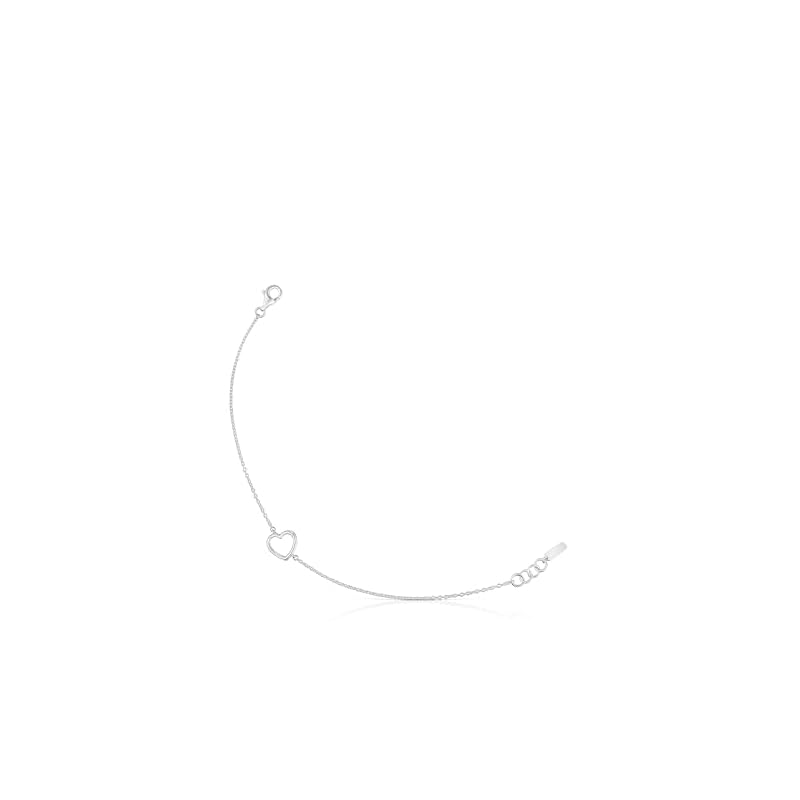TOUS Pulsera de Plata de Primera Ley para Mujer con Motivo de Corazón, 17,5 cm de Largo, Elegante y Sofisticado, Colección Silueta