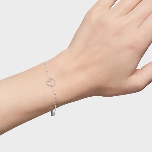 Especificaciones: TOUS Pulsera de Plata de Primera Ley para Mujer con Motivo de Corazón, 17,5 cm de Largo, Elegante y Sofisticado, Colección Silueta