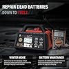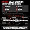 Pantalla LCD HD y ayuda de arranque del motor: Cuenta con una verdadera carga inteligente de 8 etapas: desulfatación, arranque suave, carga a granel, absorción, análisis, reparación, flotación y mantenimiento de pulsos, que ayudan a prolongar la vida útil de la batería y los problemas de reparación. La pantalla LCD transparente muestra las etapas de carga y los parámetros, para que siempre conozcas el estado. La función de arranque del motor ofrece 100 A para ayudar a activar tu batería y arrancar tu automóvil en 100 segundos