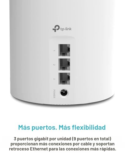 Más puertos Gigabit: cada Deco X55 tiene 3 puertos Gigabit Ethernet (6 en total para un paquete de 2) y soporta backhaul Ethernet con cable para mejores velocidades. Cualquiera de ellos puede funcionar como enrutador Wi-Fi