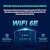 Verdadera velocidad de tres bandas: las tres bandas WiFi trabajan juntas para liberar las velocidades totales de su red de hasta 5,400 Mbps para 200 dispositivos (6 GHz: 2402 Mbps (HE160); 5 GHz: 2402 Mbps (HE160); 2.4 GHz: 574 Mbps). ¹ ³