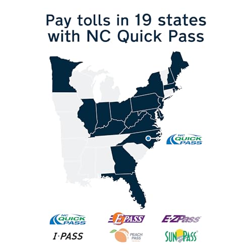 Adonde funciona: utilice el transpondedor NC Quick Pass Sticker para tasar peajes en 19 estados, incluidos Carolina del Norte y los siguientes estados de la establecimiento asociada: E-PASS, E-ZPass, I-PASS, Peach Pass y SunPass.