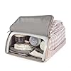 Esta trona portátil para bebés Caetana es la solución perfecta para padres en movimiento que desean ofrecer a sus pequeños un asiento seguro y cómodo en cualquier lugar. Con un diseño moderno de cuadros en tonos neutros, esta trona que combina funcionalidad y estilo es la solución perfecta para alimentar a tu bebé en cualquier lugar. Su diseño plegable permite llevarla fácilmente a cualquier lugar, ya sea a un restaurante, de viaje o a la casa de los abuelos. Cuenta con una correa para llevarla cómodamente al hombro. Incluye un compartimento de almacenamiento en la base, perfecto para guardar pañales, toallitas u otros accesorios esenciales del bebé. Se adapta a la mayoría de las sillas de adulto estándar, ofreciendo versatilidad y comodidad en diferentes entornos. Incluye correas ajustables para fijarla de manera rápida y segura a al respaldo y al asiento. Las medidas mínimas de las sillas de adulto para poder fijar la trona son: altura mínima de respaldo 48.5 cm, anchura mínima del asiento 36 cm y profundidad mínima del asiento 34 cm. Dispone de arnés ajustables para sujetar bien al bebé proporcionando máxima seguridad durante las comidas. Fabricada con materiales de alta calidad, duraderos y resistentes, ideal para el uso diario. Es muy fácil de limpiar ya que es completamente desenfundable. Esta silla portátil está destinada para bebes que puedan mantenerse sentados por si solos. Desde los 6 meses hasta máximo 3 años o un peso máximo de 15 kgs. Cumple con la normativa EN 16120:2012+A2:2016. Asiento elevador. Walking Mum protege a tu bebé utilizando los mejores tejidos, libres de colorantes azoicos y sustancias nocivas para la salud. Especificaciones: Materiales: 100% Poliéster. Medidas cerrada: 29x36x31 cm.