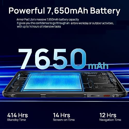 ★【Potente Batería de 7,650mAh】La enorme capacidad de batería de 7,650mAh del Armor Pad Lite. Te brinda la confianza para pasar un día de trabajo completo o actividades al aire libre, con hasta 14 horas de tareas intensivas, comunicación con el equipo, seguimiento GPS y visualización de videos. (414 Horas en Espera, 14 Horas de Tiempo de Pantalla Encendida, 12 Horas de Navegación)