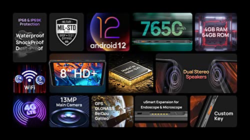 Ulefone Armor Pad Tablet Teléfono, 8» Android 12 HD+ IP68/IP69K Impermeable Antigolpes, 4GB+64GB, Batería 7650mAh, Doble SIM 4G LTE (3 Ranuras para Tarjeta), 13MP+5MP, GPS Huella Digital