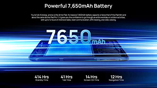 ★【Potente batería de 7.650mAh】Estás lleno de energía, y también lo está el Armor Pad. Su enorme capacidad de batería de 7.650mAh es el doble que la del iPad Mini y aproximadamente la misma que la del iPad Pro 11. Te brinda la confianza para enfrentarte a todo un día de trabajo o actividades al aire libre, con hasta 14 horas de tareas intensivas, comunicación en equipo, seguimiento GPS y visualización de videos.