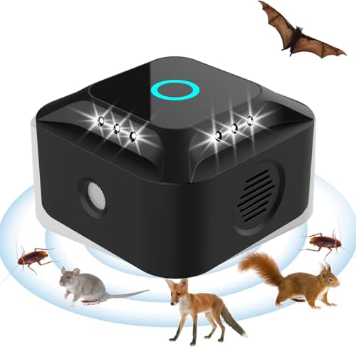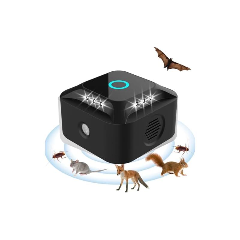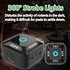 Especificaciones: Ultrasonido para ratas, repelente ultrasónico para ratones, ratones y ratas 360° con luz LED repelente ultrasónico disuasores para ratones roedores parásitos ratas, arañas, polillas y hormigas