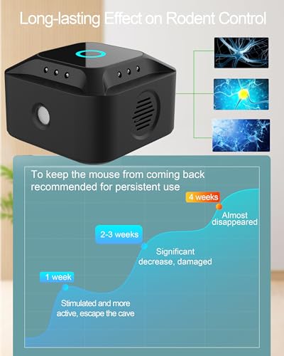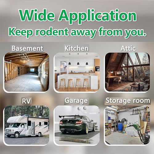 Mantiene el cambio de ruido: el repelente de ratones enchufable varía los sonidos para evitar que los roedores se acostumbren al ruido de alta frecuencia, disuade las plagas de ratones, roedores y plagas. El repelente de plagas se adapta prácticamente a cualquier rincón o cranny en su hogar que tiene un outlet. Protección integral contra roedores en tu hogar.