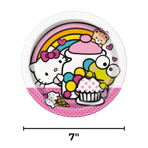 Especificaciones: Unique Platos redondos de postre de papel rosa y blanco de Hello Kitty & Friends, 7 pulgadas (paquete de 8), diseño adorable, perfectos para fiestas y celebraciones temáticas de Hello Kitty