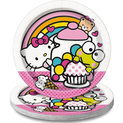 Perfecto para fiestas temáticas: Ideal para fiestas de cumpleaños temáticas de Hello Kitty, citas de juego o cualquier ocasión especial, estos platos añaden un toque de fantasía y diversión a tu mesa.