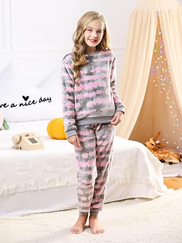 V.&GRIN Pijama de forro polar para niñas, suave y acogedor conjunto de sudadera y pantalones para niños de 7 a 16 años