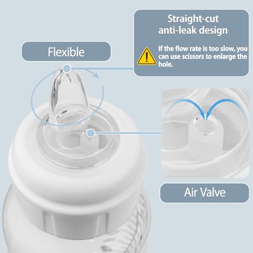 Compatibilidad perfecta: compatibilidad perfecta con botellas estrechas y botellas de boquilla para sorber de Dr. Brown, estas boquillas de silicona se adaptan perfectamente para regar fácilmente, asegurando un gran articulación para la taza favorita de tu gordo.