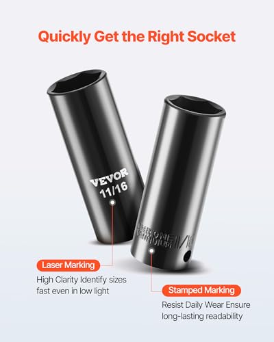 Marcas de tamaño fáciles de leer: con láser y marcas estampadas, este juego de enchufes de impacto le permite identificar rápidamente el tamaño correcto, incluso en entornos con poca luz, como trenes de aterrizaje de automóviles. El diseño estampado resiste el desgaste para una legibilidad duradera