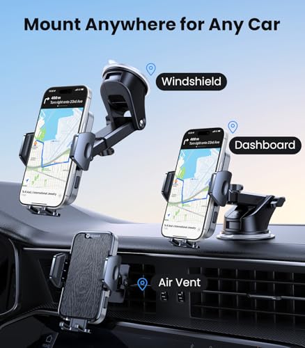 [Liberación de doble cara y rotación de 360°] Experimenta la máxima comodidad con los botones de liberación de doble cara mejorados: monta/quita tu teléfono con cualquiera de las manos en 1 segundo, sin buscar tientas. La base de ventosa giratoria de 360° y los brazos extensibles totalmente ajustables te permiten encontrar la posición de conducción ideal fácilmente. Disfruta de ángulos perfectos para la navegación GPS y la máxima comodidad en cualquier viaje. Más de 5,000 ciclos rigurosamente probados, este duradero soporte para teléfono de automóvil ofrece un rendimiento confiable y estable durante años.