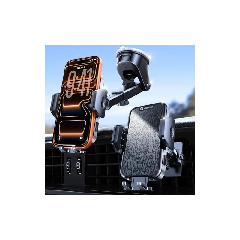 [Sujeta resistente cualquier teléfono de 4 a 7 pulgadas] Hemos sido pioneros en las abrazaderas laterales ajustables y el pie estabilizador para sostener de forma segura cualquier dispositivo de 4 a 7 pulgadas con funda gruesa, incluyendo todos los modelos de iPhone (17 Pro Max, 16, 15, 14, 13, 12, 11, XR, X, SE, mini), Samsung Galaxy (S25 Ultra, S24, S23, S22) , S21, A53, A22), Google Pixel, Xiaomi y Motorola. La zona antideslizante de huellas dactilares en las abrazaderas garantiza un agarre seguro y fácil con una sola mano. Este es el último soporte de teléfono para automóvil que necesitarás comprar.
