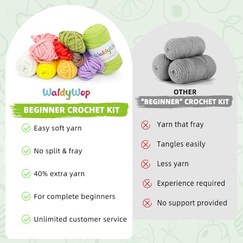 Kits de ganchillo todo en uno para principiantes: este kit de ganchillo WaldyWop para principiantes incluye todo lo que necesitas para comenzar: 40% hilo extra colorido, gancho ergonómico, marcadores de puntada, video paso a paso e instrucciones impresas detalladas. Ya sea que estés explorando tu primer juego de ganchillo o introduciendo a los niños a ganchillo para principiantes, este kit lo hace fácil y divertido. Nuestros kits de ganchillo están diseñados para todas las edades, perfectos para adultos y niños de 8 a 12 años.