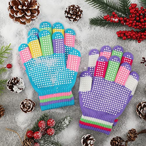 Whaline 9 pares de guantes mágicos antideslizantes para niños, guantes de punto de invierno con agarre de dedo completo, guantes antideslizantes para niños y niñas